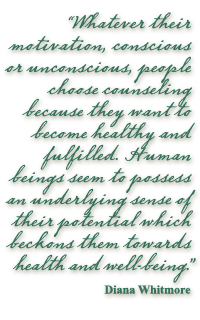 A Transpersonal Counselor works from the precept that each person has the innate ability to create a life which holds truth, meaning, and purpose. The Counselor serves as a guide to self-discovery. Unlike traditional theories, which hold emotional suffering as a symptom of disease, Transpersonal Psychology sees problems and difficulties as challenges, and as opportunities to move forward in our personal growth.